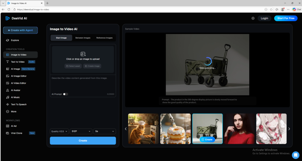 5. If you choose Image to Video, upload a clear source image and add a short prompt explaining the motion you want to create.